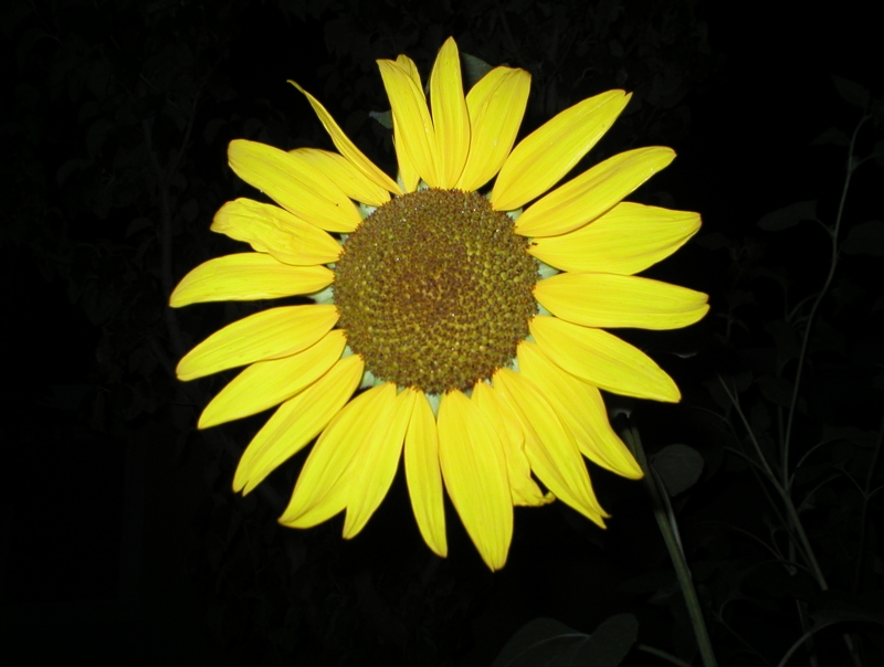 A sunflower at night.